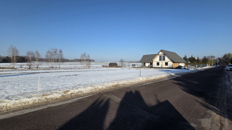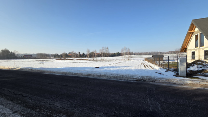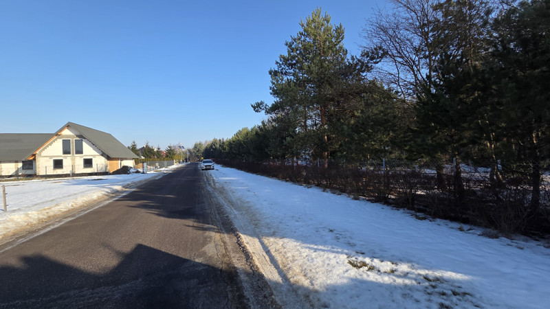 Sąsiedztwo: działka z rozpoczętą budową domu jednorodzinnego, tereny niezabudowane (jak na zdjęciach), droga asfaltowa (natężenie ruchu kołowego niskie). Dalsze sąsiedztwo: rozproszona zabudowa jednorodzinna, tereny leśne.