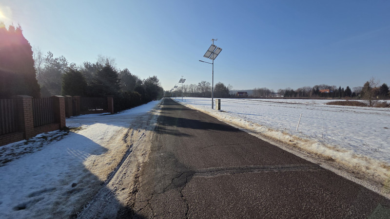 Droga dojazdowa oświetlona, asfaltowa.