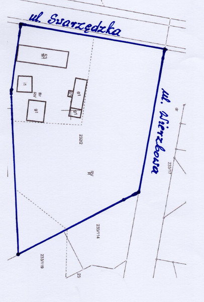 Posiadam na sprzedaży działkę, położoną w Gruszczynie, narożnik ulicy Swarzędzkiej i ul. Wierzbowej o numerze geodezyjnym 232/2 o powierzchni 6945 m2. W mpzp określona jest symbolem MN/U (tereny zabudowy mieszkaniowej jednorodzinnej lub zabudowy usługowej). Front działki o szerokości 76 m, działka charakteryzujący się płaskim ukształtowaniem terenu z wjazdem od ulicy Swarzędzkiej i ulicy Wierzbowej.