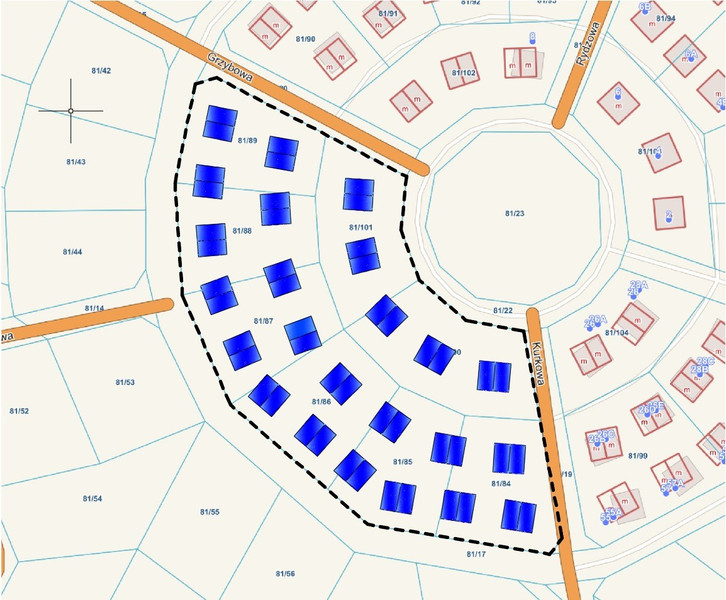 • Z POZWOLENIEM na budowę 48 budynków bliźniaczych dwulokalowych ( 96 lokali)