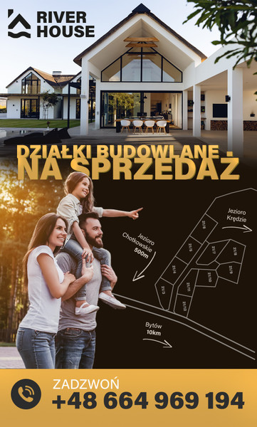 Jeżeli szukacie idealnej działki, w malowniczej, spokojnej okolicy otoczonej lasami oraz jeziorami to mamy propozycję doskonałą - River House!
