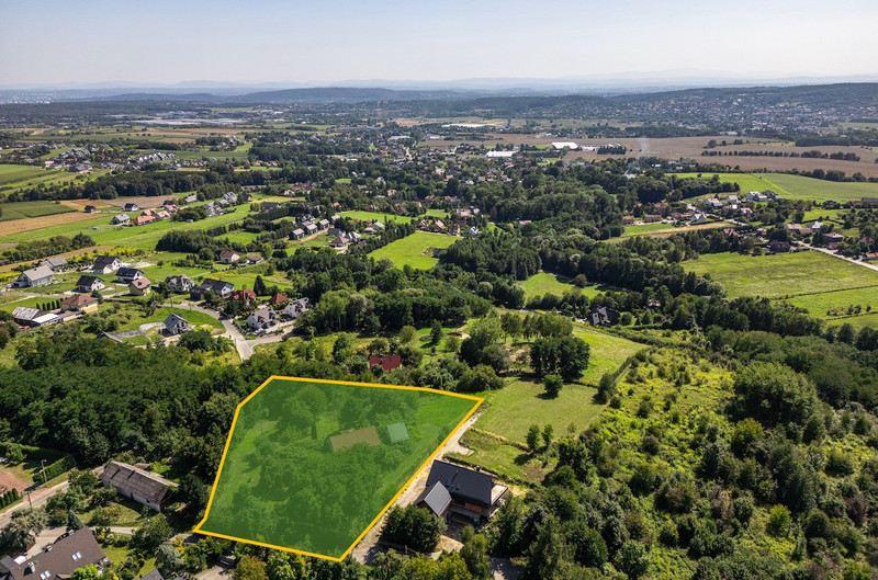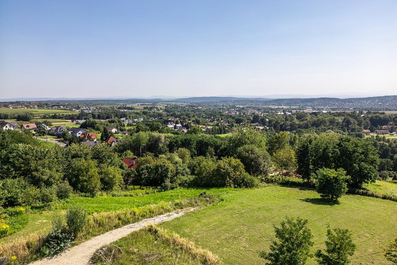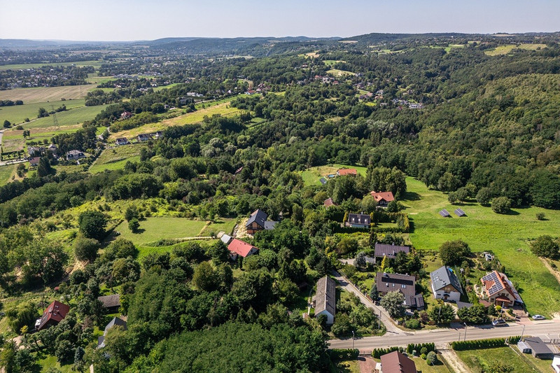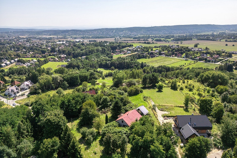 Widokowa działka budowlana – Wielka Wieś, ul. Źródlana 5 | media na działce | panorama Krakowa | 5 816 m²
