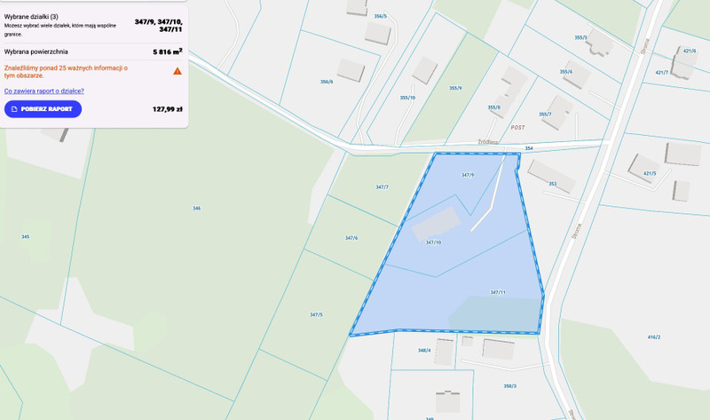 • Działka nr 347/11 – 2 973 m² – 100% budowlana