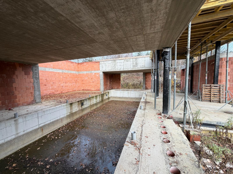 Na działce rozpoczęto budowę wolnostojącego, piętrowego domu jednorodzinnego o imponującej powierzchni użytkowej 925,12 m² (zgodnie z projektem).
