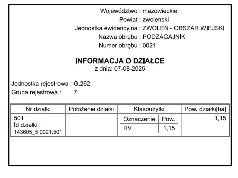 Nieruchomość składa się z dwóch działek o nr 3227 oraz 501, obręb Podzagajnik, gm. Zwoleń.