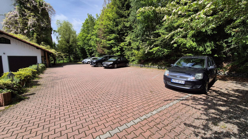 o duży parking na około 30 samochodów