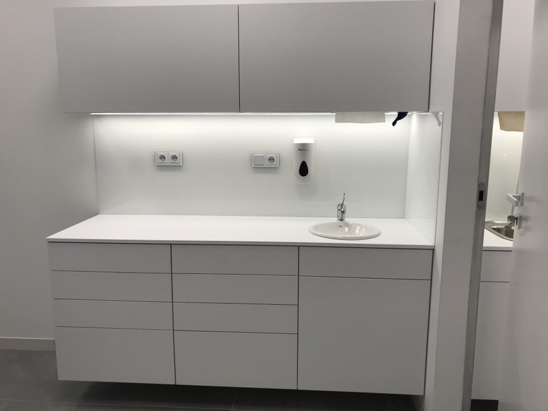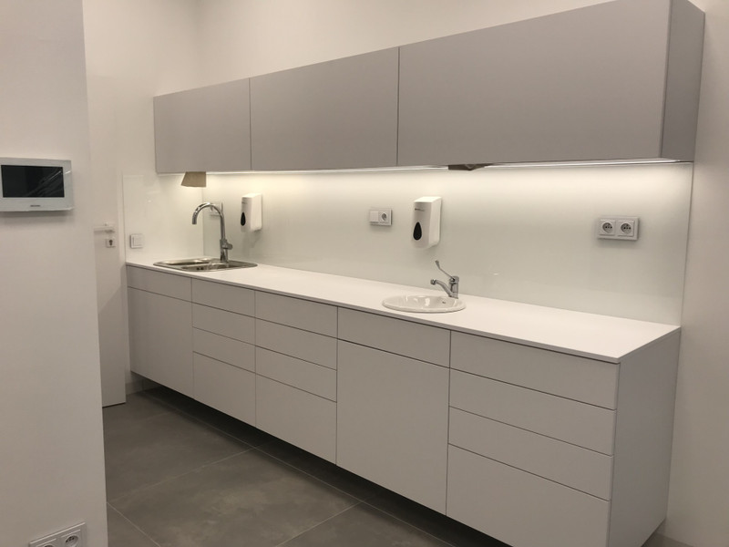 Wysoki standard : unity Planmeca, nowe meble na wymiar. Gabinety są połączone przejściem dla personelu i mogą stanowić całość.