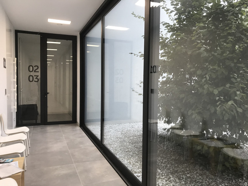 Niezależne wejścia dla pacjentów, wspólna poczekalnia z widokiem na patio. Budynek o nowoczesnej architekturze , własny parking dla pacjentów, klimatyzacja, mechaniczna wentylacja, kontrola dostępu na kartę, salka z monitorami dla asystentek z filmami edukacyjnymi.