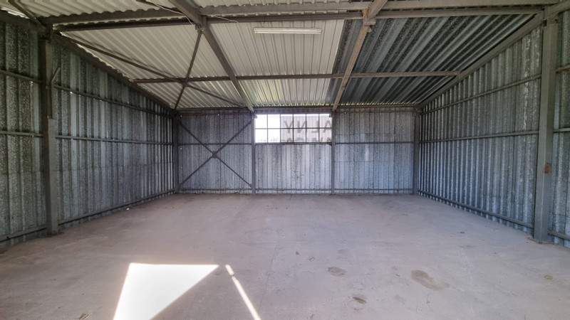 Na działce stalowa hala magazynowa o powierzchni 180 m2, podzielona na 2 części po 90 m2, każda z bramą (2,8 m x 2,8 m). Wysokość hali od 3 do 4 m. W hali instalacja elektryczna, oświetlenie.