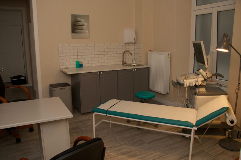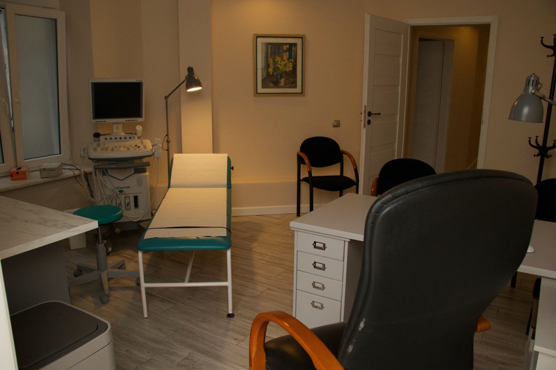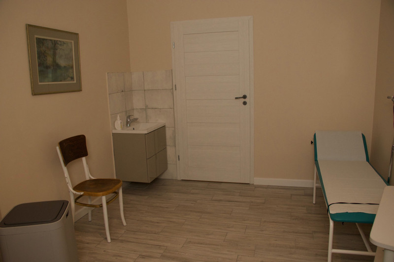 Punkty wodne, umywalki, w każdym pomieszczeniu. Dwie toalety, dwa gabinety, poczekalnia i pokój socjalny, brudownik.