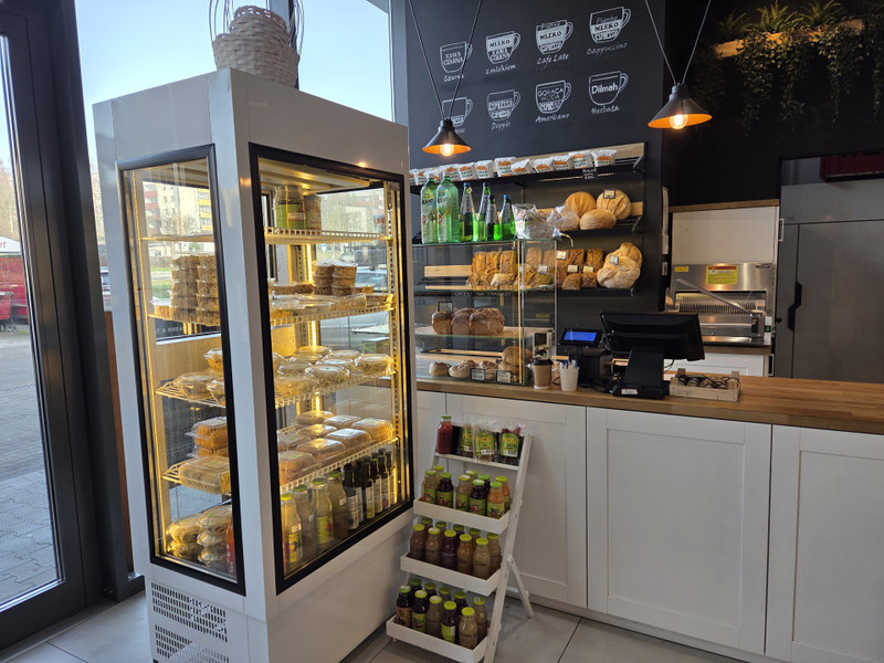 6. Dwie osobne, ale połączone lodówki z ladą sprzedażową