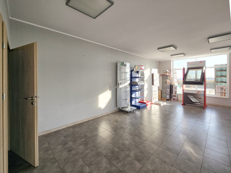 Budynek o pow. użytkowej 663 m², z salonem sprzedaży, dwoma magazynami wysokiego składowania i częścią biurowo–socjalną, stoi na działce 3285 m² z ok. 1790 m² placu manewrowo–parkingowego i szeroką bramą wjazdową 9,4 m – bez problemu obsłużysz tu TIR-y i duże dostawy.