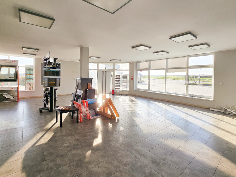 Salon sprzedaży to otwarta, ustawna przestrzeń z dużymi witrynami zapewniającymi światło dzienne oraz energooszczędnym oświetleniem LED.