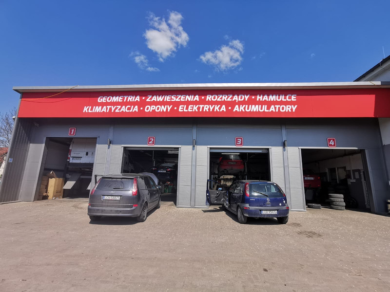 - 1 x podnośnik 4kolumnowy pod regulację geometrii kół (Nussbaum),