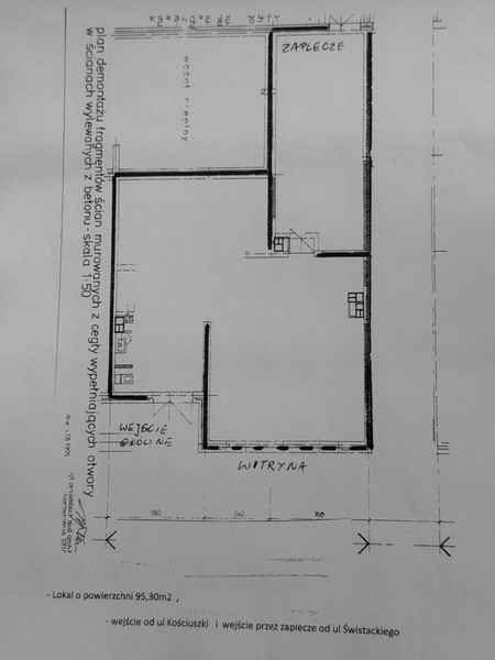 - dwa wejścia do lokalu : główne od ulicy Kościuszki, oraz od zaplecza od ulicy Świstackiego