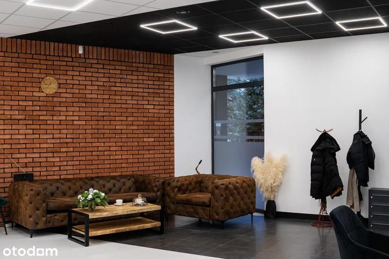 - nowoczesne, nietuzinkowe tekstury materiałów wykończeniowych, tj. cegła, wykładzina biurowa, spójnie wkomponowane na ścianach i posadzkach nadają przestrzeni charakteru i elegancji doskonale uzupełniając optykę designerskich sufitów podwieszanych oraz nowoczesnego oświetlenia.