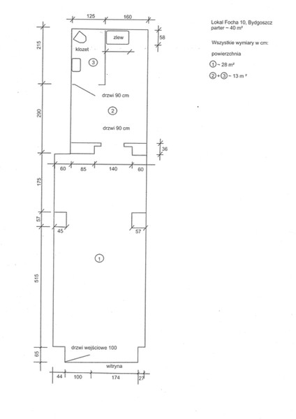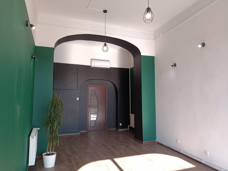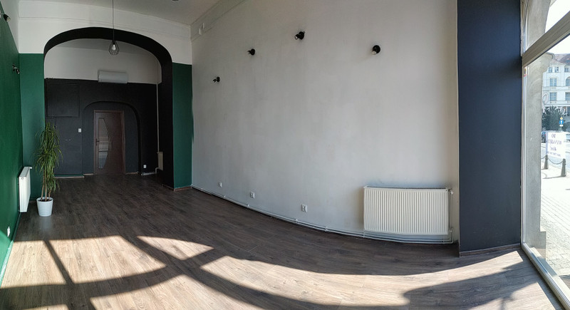 W głębi zaplecze kuchenne i toaleta. Powierzchnia około 41 m2. Stan bardzo dobry, do uzgodnienia możliwość aranżacji wnętrza zgodnie z wymaganiami nowego Najemcy.
