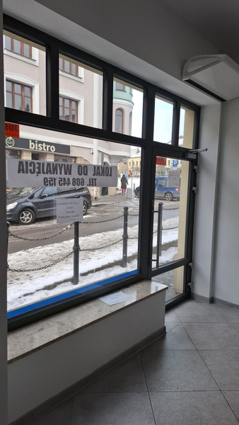 Witryny: Dwie duże, nowoczesne witryny okienne zapewniają doskonałe doświetlenie wnętrza oraz idealne miejsce na reklamę.