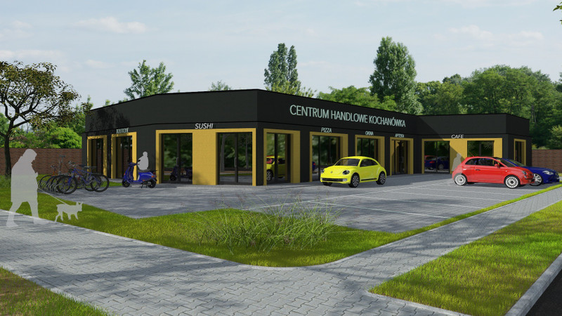 Parterowy, nowo wybudowany pawilon handlowo- usługowy o pow. 530 m2 mieszczący się w Łodzi przy ulicy Aleksandrowskiej 155 na Kochanówce, między ulicami Uprawna, a Chochoła.