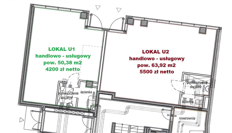 Do wynajęcia lokal usługowy o powierzchni 63,92 m2 z możliwością powiększenia.