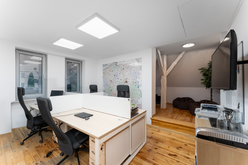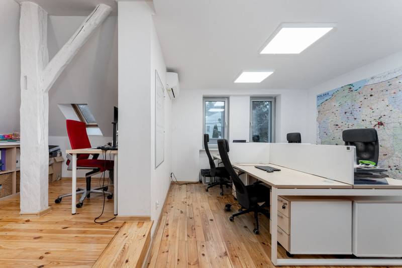 • Możliwość wynajęcia z pełnym umeblowaniem (biurka, regały, krzesła)