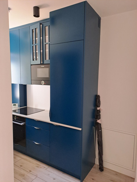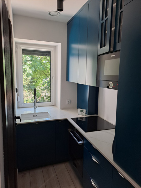 wyposażenie kuchni: lodówka, płyta indukcyjna, piekarnik, mikrofalówka (Bosch),