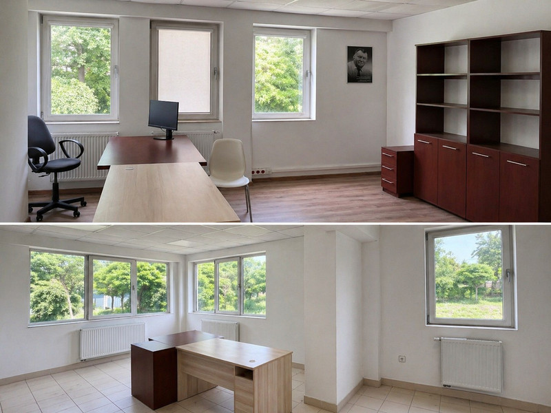 Lokal z wydzielonymi pomieszczeniami (nieprzechodnimi), pomieszczeniem socjalnym oraz toaletami. Stan lokalu do odświeżenia