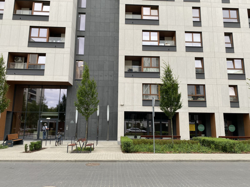 W okolicy jest mix biurowców i mieszkań, z budynku jest 9 min. pieszo do metra (stacja Wilanowska), do wyłącznej dyspozycji lokali usługowych w budynku jest też przeznaczonych 10 miejsc postojowych w garażu podziemnym.