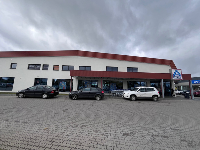 Na pierwszym piętrze, nad sklepem ALDI znajdują się dwa wolne lokale o łącznej powierzchni ok. 82m2. (Lokal 1 - 55m2, Lokal 2 - 27m2). Wejście do lokali znajduje się z boku budynku, do lokali prowadzi klatka schodowa. Liczba miejsc parkingowych do wspólnego użytku z sklepem ALDI: 115.