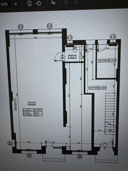 Powierzchnia lokalu to 101 m2 - dwa pomieszczenia oraz toaleta, lokal usytuowany na parterze.