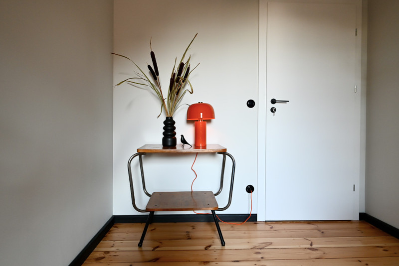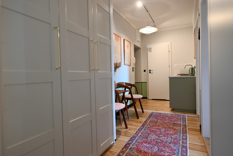 • Pojemna szafa na ubrania ze schowanym odkurzaczem pionowym do dyspozycji najemców