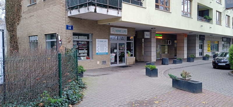 od ulicy sąsiednie lokale to klinika dentystyczna, fryzjer, zdrowa żywność, siłownia action etc. Cena wynajmu 4500brutto + wspólnota 833zł (zwykle są spore nadpłaty wiec realnie wychodzi około 100zł mniej miesieczne po półrocznym rozliczeniu mediów), prąd(umowa na najemcę), kaucja 6000zł. Od 2 lat lokal jest wynajęty dla protetyka.