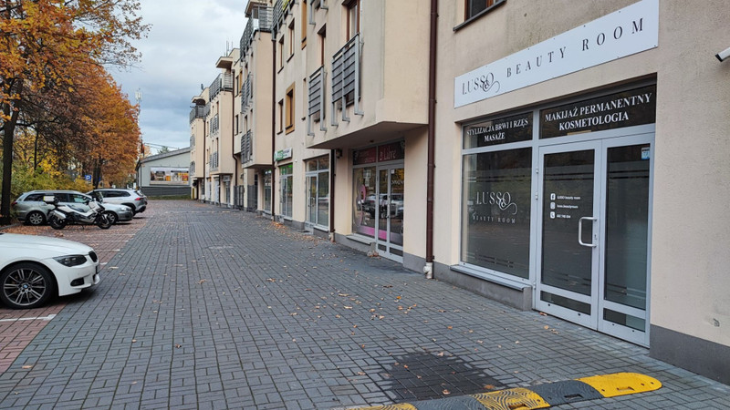 Lokal na parterze bezpośrednio przy dużym parkingu ( parking dla klientów bezpośrednio przed budynkiem ), witryna od strony ulicy ( łatwy dostęp również dla osób z niepełnosprawnościami ) z widokiem na las ( Mazowiecki Park Krajobrazowy ) - pełna swoboda prowadzenia działalności - dostęp całodobowy.