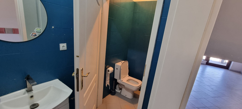 Duże okna z widokiem na plac zabaw i zieleń, płytki podłogowe, ściana z cegły dekoracyjnej, klimatyzacja, osobne WC z umywalką + oddzielny magazynek.