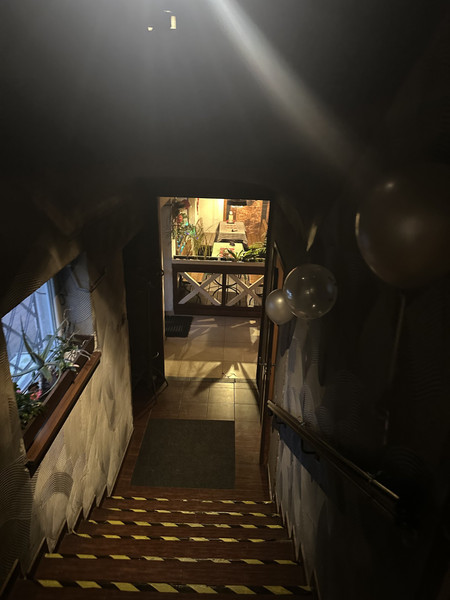 Na parterze mała sala konsumpcyjna (ok. 25 osób) z dużym piecem