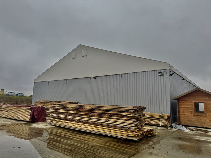 - dach: druga warstwa plandek dachowych 500g/m2 + rynny wew.