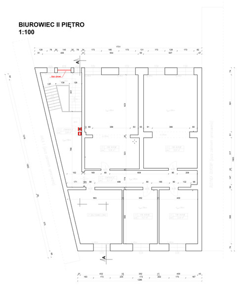• budynek biurowy o pow. użytkowej 912,58 m2, posiada 3 kondygnacje naziemne i 1 podziemna, winda towarowo-osobowa.
