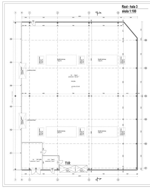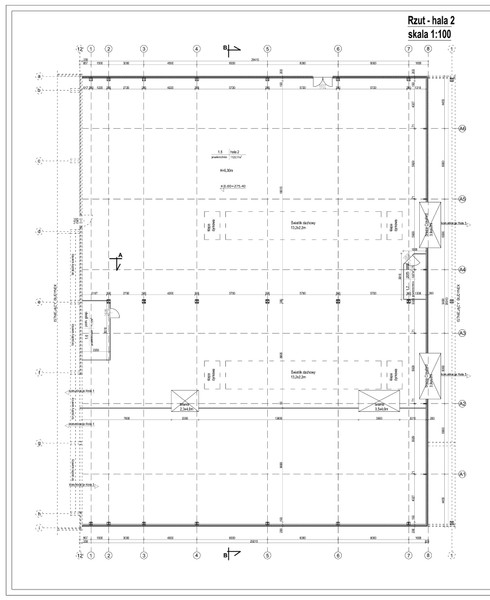 • hala magazynowa o pow. użytkowej 1 124,9 m2, wysokość w najniższym punkcie 4,3 m (wysokość w najwyższym punkcie 6,3 m),