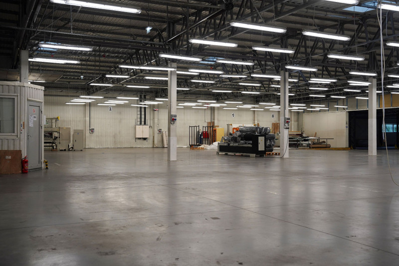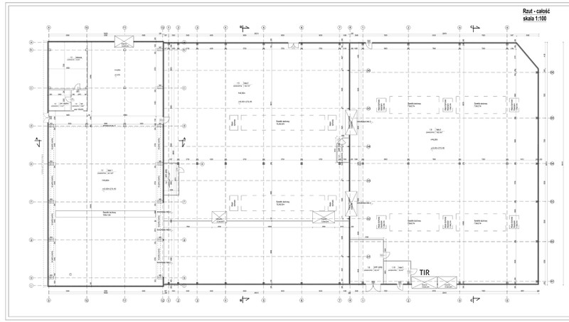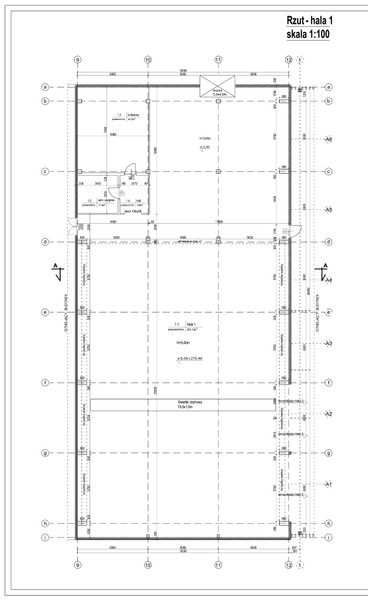 • hala magazynowa o pow. użytkowej łącznie 1345 m2 (antresola o pow. 645 m2), wysokość hali ogółem 7,1 m w najniższym punkcie (wysokość w najwyższym punkcie 9,3 m) (wysokość antresoli 3,85 m), kompresor śrubowy oraz brama (4x3)