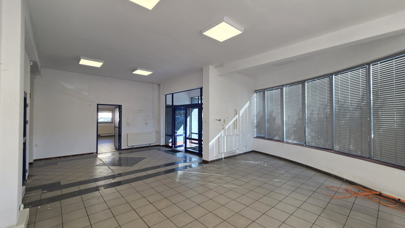 *przestronna sala sprzedażowa/ekspozycyjna z możliwością podziału na mniejsze pomieszczenia biurowe,