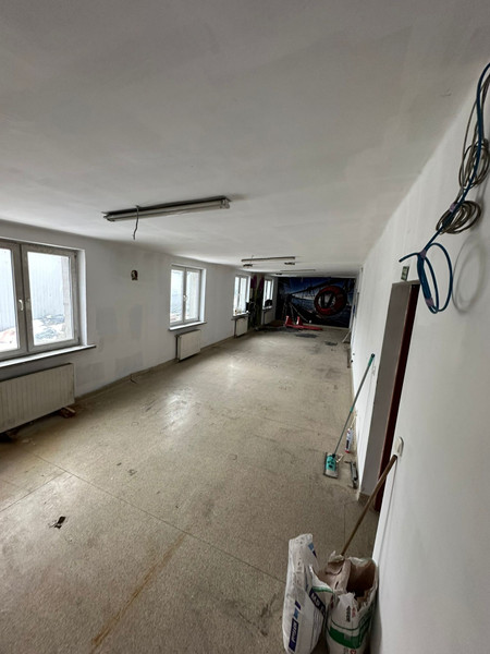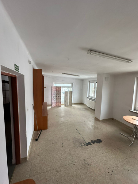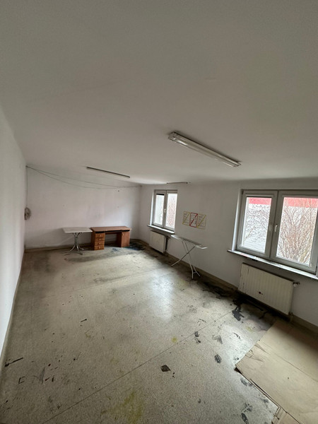 Parterowy budynek o łącznej powierzchni około 430m2. Budynek ten podzielony jest na kilka pomieszczeń, jednak, ponieważ większość to ścianki działowe, można przekształcić poszczególne pomieszczenia pod własne potrzeby