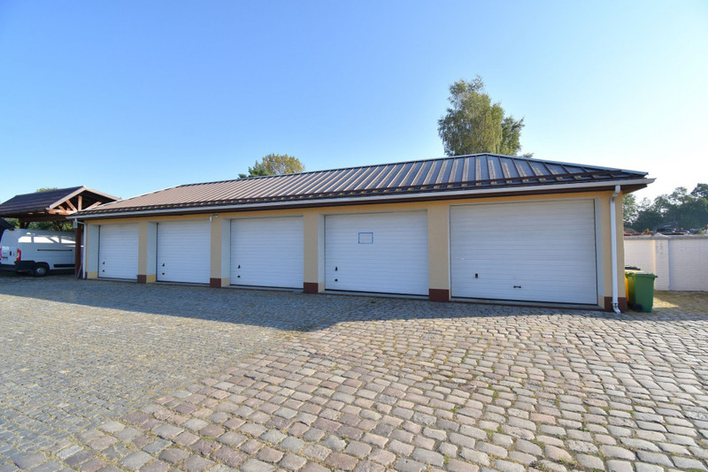 7. drugi zespół garaży – murowany budynek garażowy, 4-boksowy.