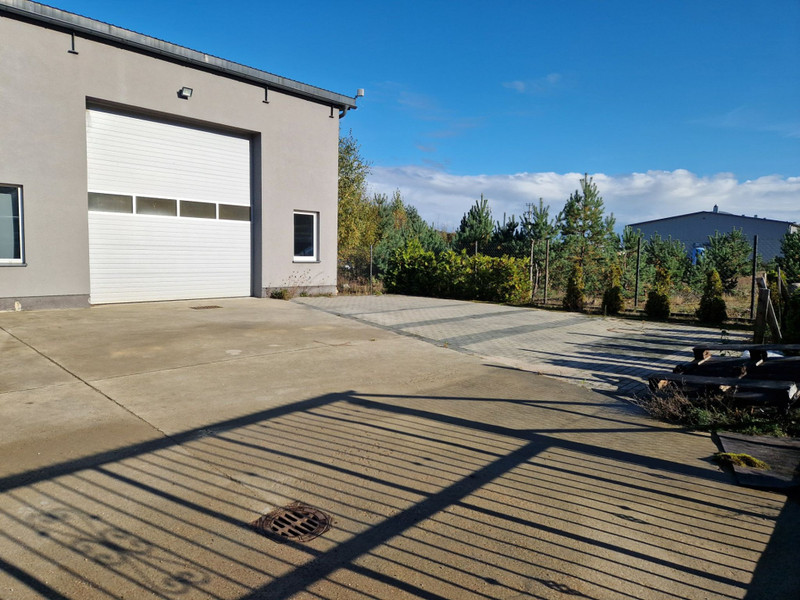 Parking przed halą z kostki brukowej (podjazdy dla aut wykonane z betonu o wysokiej wytrzymałości). Całość działki ogrodzona, z zadbanym terenem.