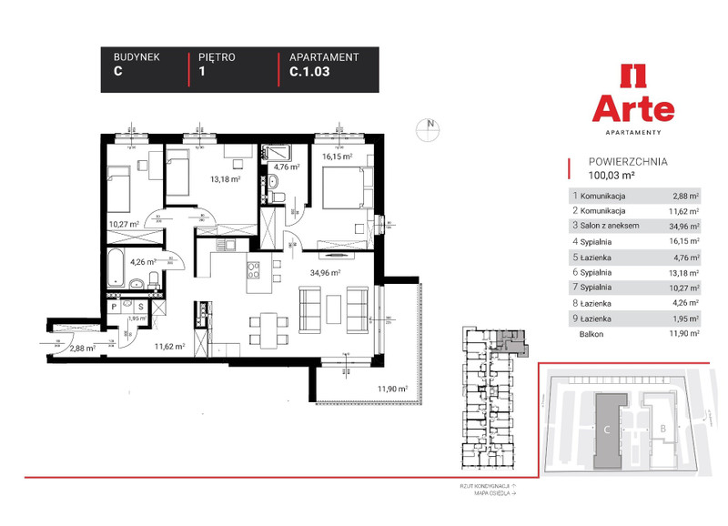 Znajduje się on w prestiżowej inwestycji Apartamenty Arte, oddanej do użytku w 2022 roku. Kameralne osiedle składa się z zaledwie dwóch budynków, z wjazdem zarówno od ulicy Strykowskiej, jak i Zmiennej. Spokojna okolica i bardzo mili sąsiedzi. Pomiędzy blokami znajduje się mały plac zabaw. Drugi samochód można bez problemu i za darmo parkować na Zmiennej.