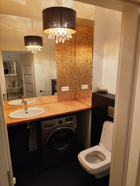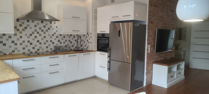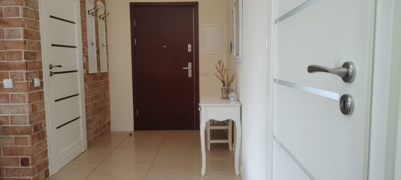 Apartament wykończony gotowy do zamieszkania. Wszystkie pokoje, łazienki oraz kuchnia w pełni wyposażone. Aneks kuchenny z meblami w zabudowie oraz sprzętem AGD, w tym lodówką, zmywarką, piekarnikiem i płytą grzewczą. W sypialniach i korytarzach znajdują się duże szafy w zabudowie.