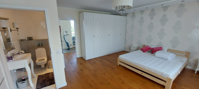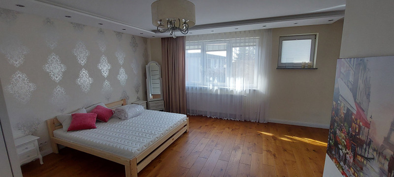 Na drugim poziomie znajduje się duża sypialnia z ubikacją 30m².