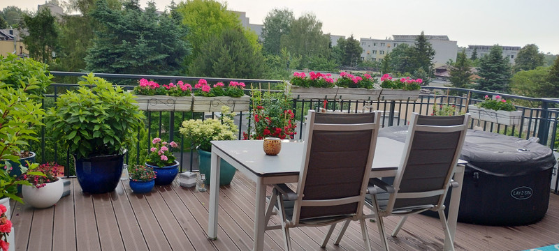 Apartament posiada dwa balkony około 8m² i 10m² oraz duży taras 37m²