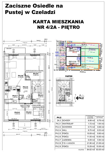 * Piętro – 83,08 m² + ogródek 93 m² + wiata + strych