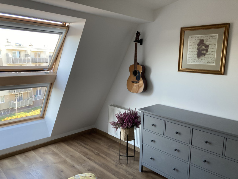 Jest to lokal narożny z ekspozycją zachodnią i północną. Mieszkanie posiada skośny sufit i jest bardzo wysokie - ponad 3,30m w najwyższym miejscu. Dzięki dużym oknom w każdym pomieszczeniu mieszkanie jest wyjątkowo jasne.