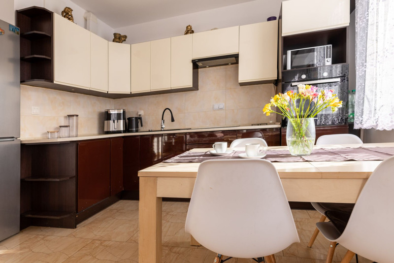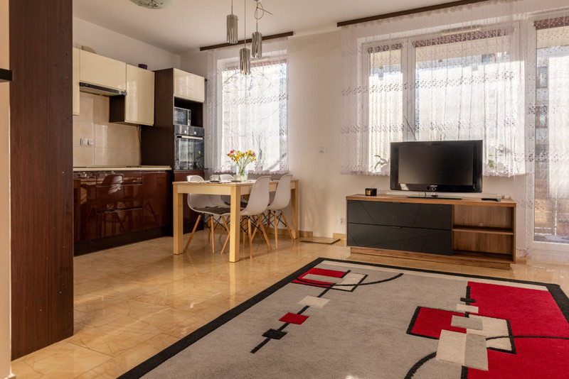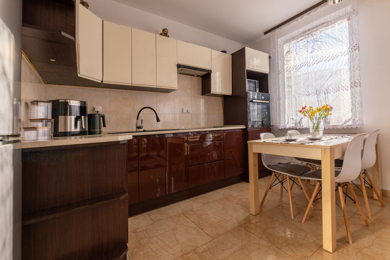 • duży salon z aneksem kuchennym 25m2 z meblami w zabudowie - wyposażony we wszystkie sprzęty firmy bosch.